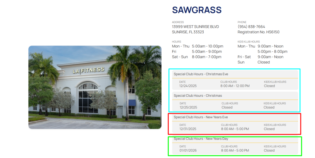 For the most up-to-date information, always check the official LA Fitness website or app before heading out.